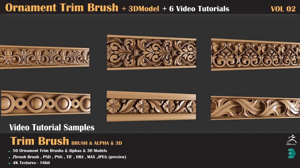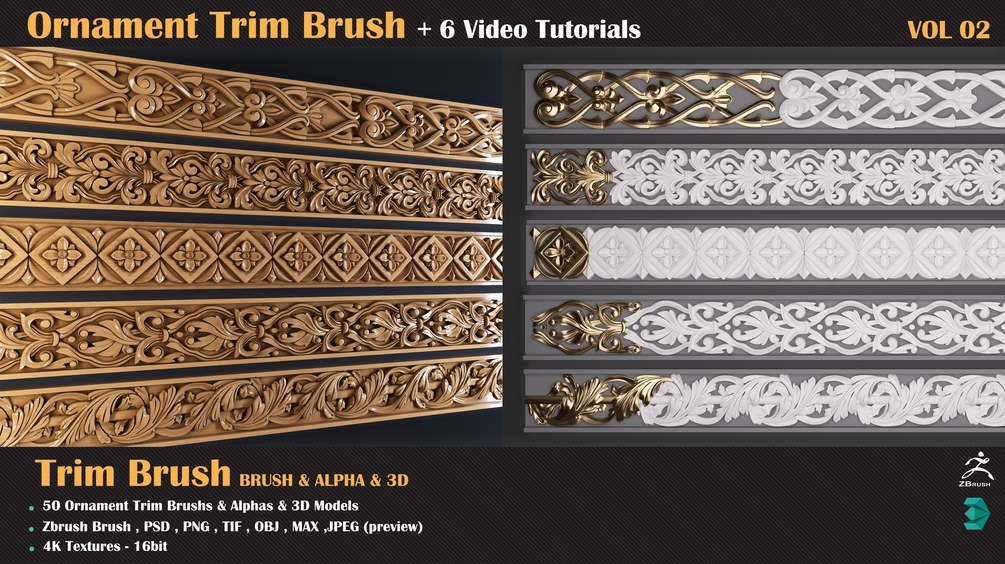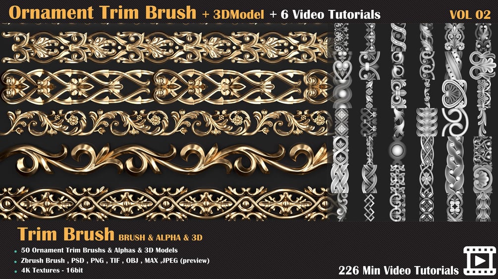 Ornament Trim Brush and 3D Models + 6 Video Tutorials+VOL02