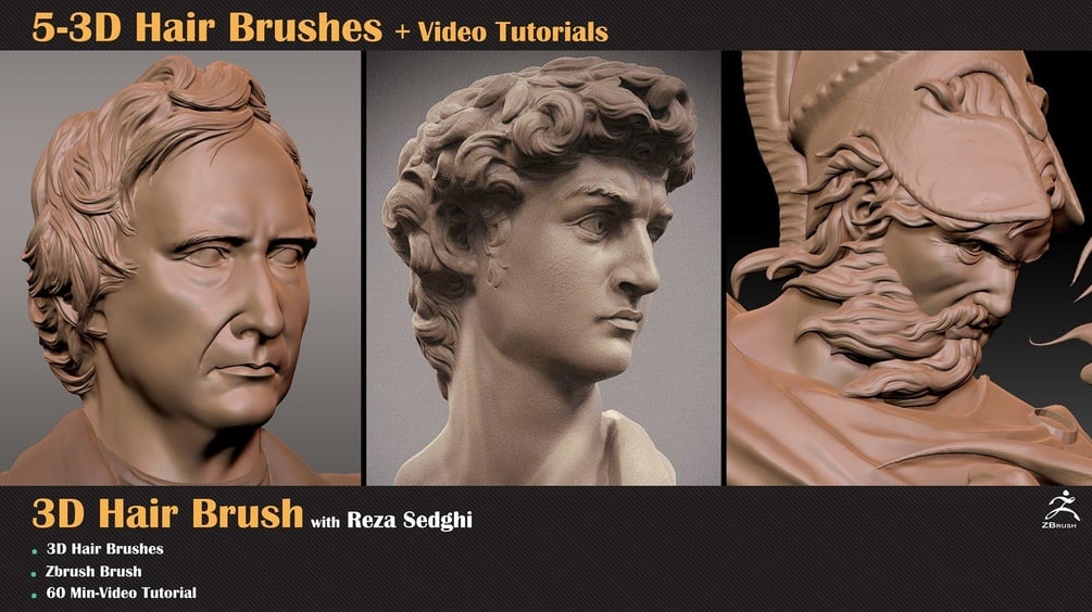 This Product includes 5 Hair Brushes for ZBrush and a Video Tutorial on How to Create Brushes