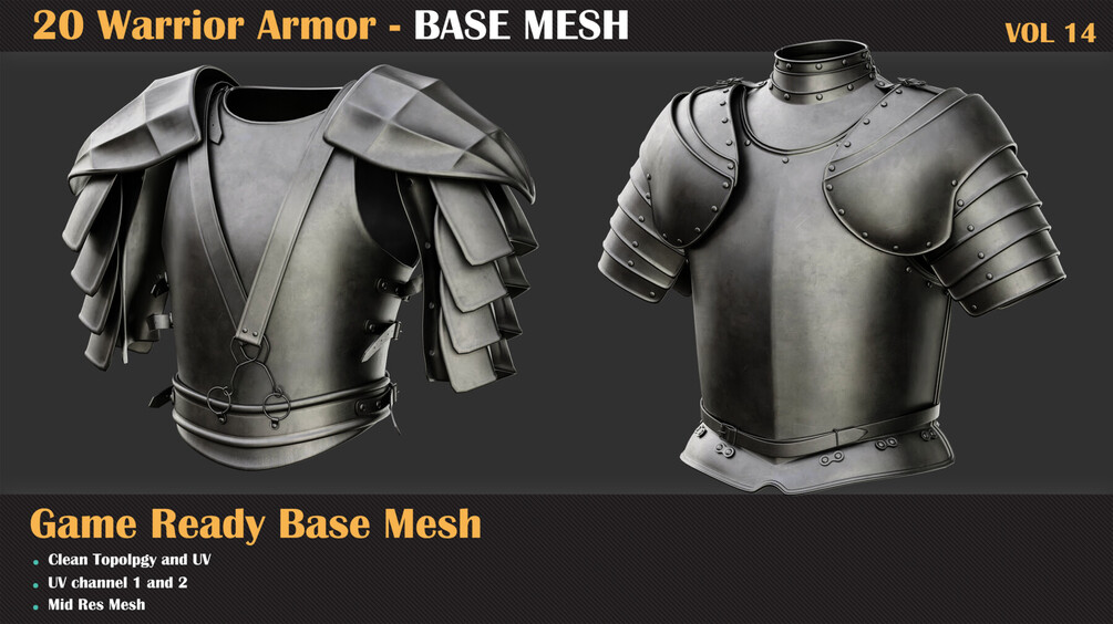 βš” VOL14 - 20 Warrior Armor BASE MESH (Game Ready) :https://www.artstation.com/a/29053853