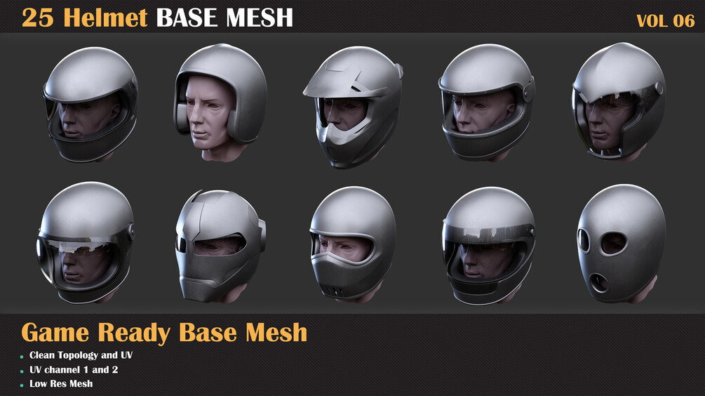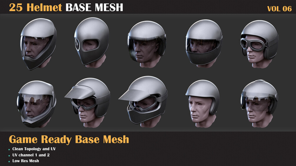 25 Helmet Base Mesh - VOL 07 ( Game Ready )