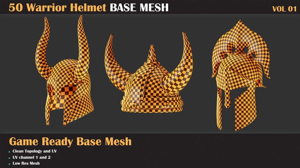 50 Warrior Helmet Base Mesh - VOL 01 ( Game Ready )