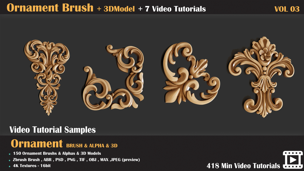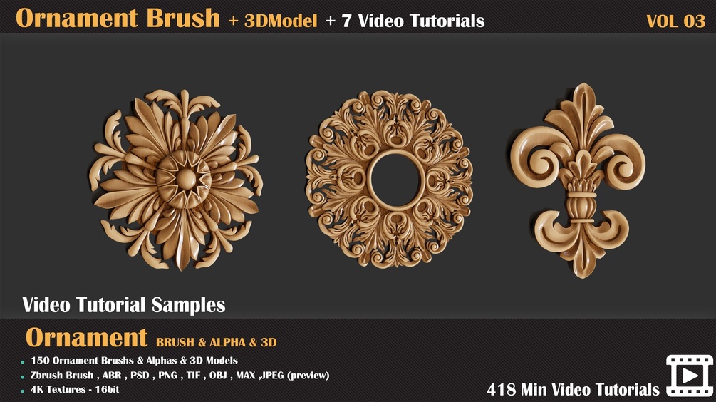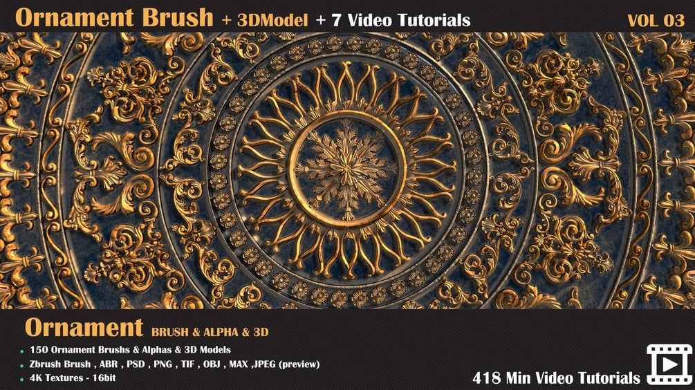 150 Ornament Brush and 3D Models + 7 Video Tutorials-VOL 03