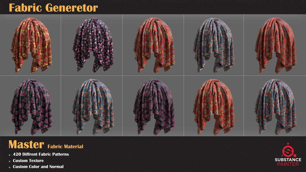 Fabric Pattern Generator for Substance Painter and Every Software which is supported by substance Ecosystem. By the way, I suggest you use the latest version of substance painter due to the remarkable features that it has. Create Stunning and fully customizable fabric textures in a second! There is a lot of option you can explore, and here you are a quick review of this fantastic material. You can find what is there and this material can do what. Please write your opinion and your suggestions about this material, and you can send us what you want!