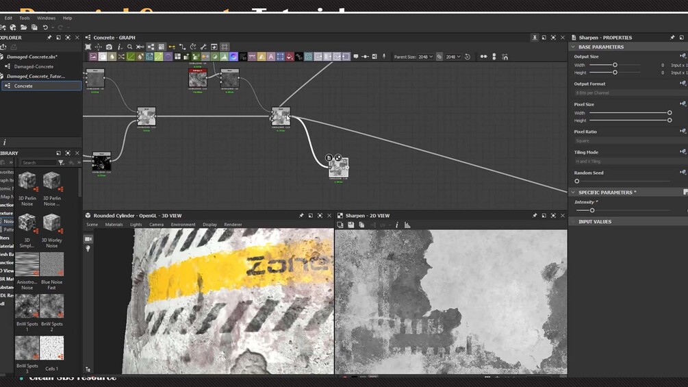 - 01- First step: Creating Height - In this chapter, we create concrete layers and combine them to achieve the result that we want. And after that, we add some details like cracks and pebbles to have more realistic results from our material