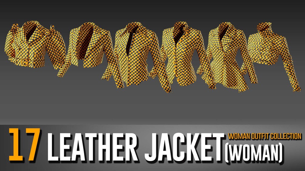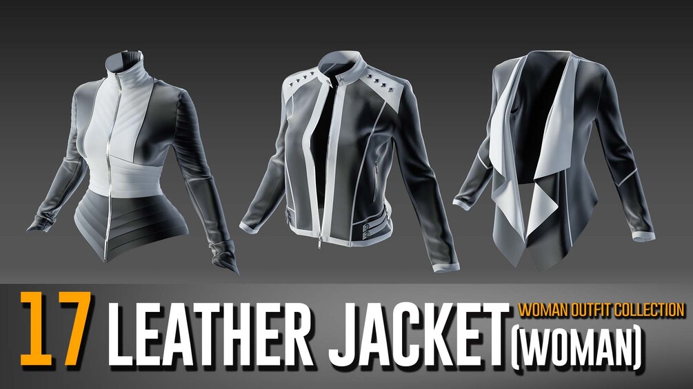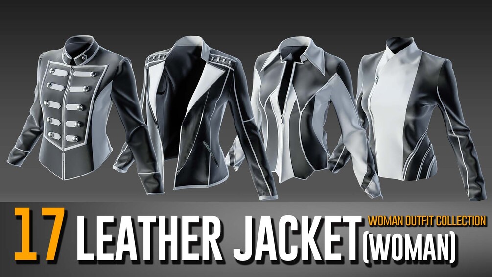 To enhance your female character's style and craft a perfectly fitted leather jacket, our product offers a range of 17 unique base meshes for women's leather jackets. This product is designed to simplify the process of creating and prototyping stylish leather jackets. The included FBX files can be easily used for prototyping or texturing to achieve the desired look. Additionally, you have the option to open the Marvelous Designer/CLO 3D projects to re-simulate or add extra details, making these assets ideal for individuals involved in fashion design.